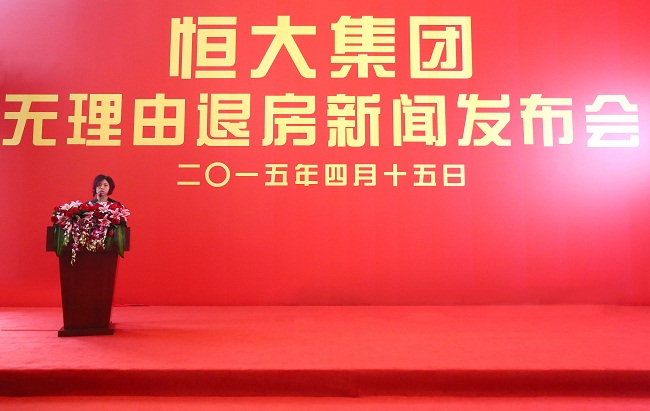 4月15日,恒大集团在广州总部举行无理由退房新闻发布会,宣布自4月16日8时起正式实施“无理由退房”,覆盖恒大在全国范围内的所有楼盘住宅。